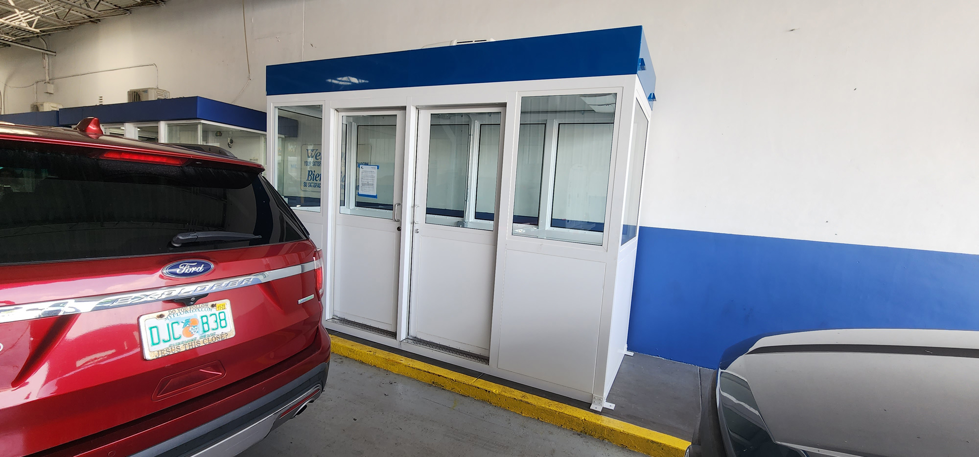 Security Booth of the Month – March 2026 For the month of March, we are going to feature 23-017 Midway Ford Service Writer Booth. This booth is our standard Prefabricated Aluminum Service Writer Booth and is sized at 4’ x 13’. This unit has two sliding doors, two workstations, with roof-mounted HVAC. The booth was…